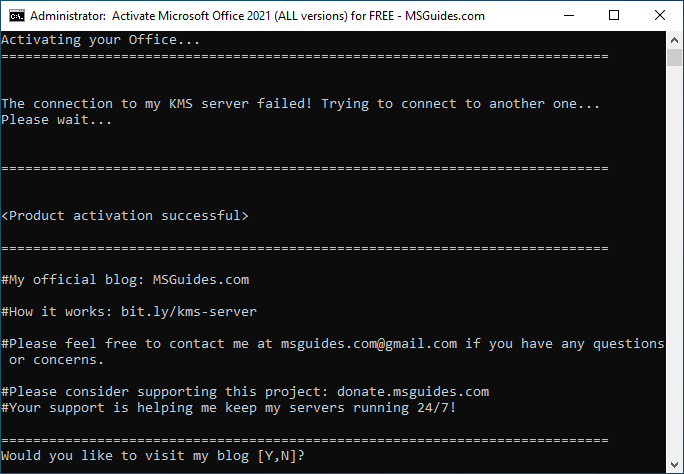 @echo off title Activate Microsoft Office 2021 (ALL versions) for FREE - MSGuides.com&cls&echo =====================================================================================&echo #Project: Activating Microsoft software products for FREE without additional software&echo =====================================================================================&echo.&echo #Supported products:&echo - Microsoft Office Standard 2021&echo - Microsoft Office Professional Plus 2021&echo.&echo.&(if exist "%ProgramFiles%\Microsoft Office\Office16\ospp.vbs" cd /d "%ProgramFiles%\Microsoft Office\Office16")&(if exist "%ProgramFiles(x86)%\Microsoft Office\Office16\ospp.vbs" cd /d "%ProgramFiles(x86)%\Microsoft Office\Office16")&(for /f %%x in ('dir /b ..\root\Licenses16\ProPlus2021VL_KMS*.xrm-ms') do cscript ospp.vbs /inslic:"..\root\Licenses16\%%x" >nul)&echo.&echo =====================================================================================&echo Activating your product...&cscript //nologo slmgr.vbs /ckms >nul&cscript //nologo ospp.vbs /setprt:1688 >nul&cscript //nologo ospp.vbs /unpkey:6F7TH >nul&set i=1&cscript //nologo ospp.vbs /inpkey:FXYTK-NJJ8C-GB6DW-3DYQT-6F7TH >nul||goto notsupported :skms if %i% GTR 10 goto busy if %i% EQU 1 set KMS=kms7.MSGuides.com if %i% EQU 2 set KMS=s8.uk.to if %i% EQU 3 set KMS=s9.us.to if %i% GTR 3 goto ato cscript //nologo ospp.vbs /sethst:%KMS% >nul :ato echo =====================================================================================&echo.&echo.&cscript //nologo ospp.vbs /act | find /i "successful" && (echo.&echo =====================================================================================&echo.&echo #My official blog: MSGuides.com&echo.&echo #How it works: bit.ly/kms-server&echo.&echo #Please feel free to contact me at msguides.com@gmail.com if you have any questions or concerns.&echo.&echo #Please consider supporting this project: donate.msguides.com&echo #Your support is helping me keep my servers running 24/7!&echo.&echo =====================================================================================&choice /n /c YN /m "Would you like to visit my blog [Y,N]?" & if errorlevel 2 exit) || (echo The connection to my KMS server failed! Trying to connect to another one... & echo Please wait... & echo. & echo. & set /a i+=1 & goto skms) explorer "http://MSGuides.com"&goto halt :notsupported echo =====================================================================================&echo.&echo Sorry, your version is not supported.&echo.&goto halt :busy echo =====================================================================================&echo.&echo Sorry, the server is busy and can't respond to your request. Please try again.&echo. :halt pause >nul